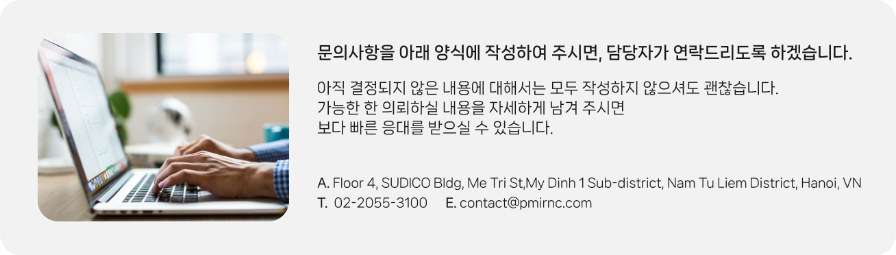 개인정보 수집 및 이용에 관한 동의 1. 수집하는 개인정보의 항목 회사는 조사의뢰/상담요청, 질문과 답변을 위해 아래와 같은 개인정보를 수집하고 있습니다. - 수집항목 : 이름, 전화번호, 이메일 - 개인정보 수집방법 : 홈페이지 2. 개인정보의 수집 및 이용목적 사용자 개인정보는 조사의뢰에 대한 상담 및 질문의 답변을 목적으로만 사용됩니다. 3. 개인정보의 보유 및 이용기간 이용자의 개인정보는 원칙적으로 개인정보의 수집 및 이용목적이 달성되면 지체 없이 파기합니다