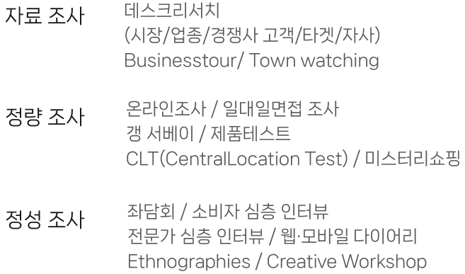 다양한 사업 분야에 대해 비즈니스 이슈 별로 활용할 수 있는 리서치 솔루션을 제공하며,